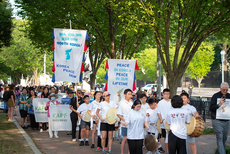 On the 71st Anniversary of the Korean Armistice Agreement, members from Korea Peace Now!, Korean American Peace Fund, Candlelight Vigil Washington DC, Veterans for Peace, ANSWER Coalition, Ending Korean War Teaching Initiative, and Korean drumming troupe Han Pan joined together for a rally and a march from the White House to the Lincoln Memorial. We called for the United States to end its longest-running conflict by ending the Korean War with a peace agreement.